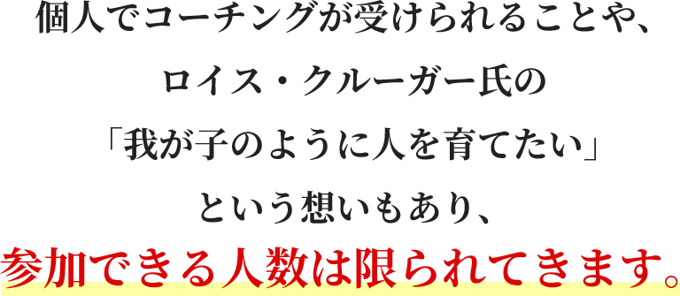 ®』の研修プログラムを開発し、世界76ヵ国に広めた伝説のコンサルタント、ロイス・クルーガー氏と経営者向けエグゼクティブコーチングプログラム、『ベイビーブレイン